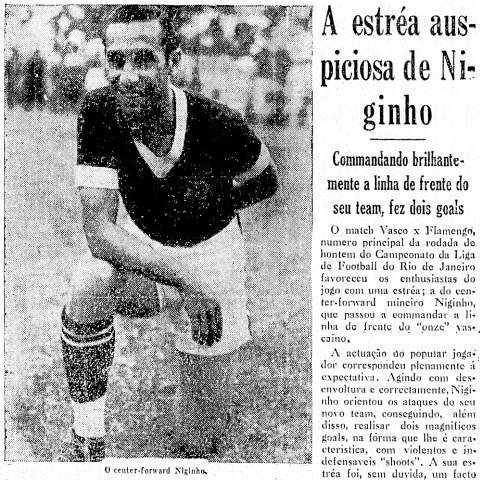 De volta ao Vasco depois da Copa, na primeira rodada do campeonato carioca de 1938, Niginho aproveitou para fazer mais dois gols no Flamengo, decretando a vitória vascaína por 2 a 0, justamente na inauguração do estádio da Gávea. Para confirmar o hábito, ele repetiu a dose no ano seguinte, com o mesmo placar no mesmo local. Por ironia, foram os dois últimos gols do artilheiro com a camisa cruzmaltina.