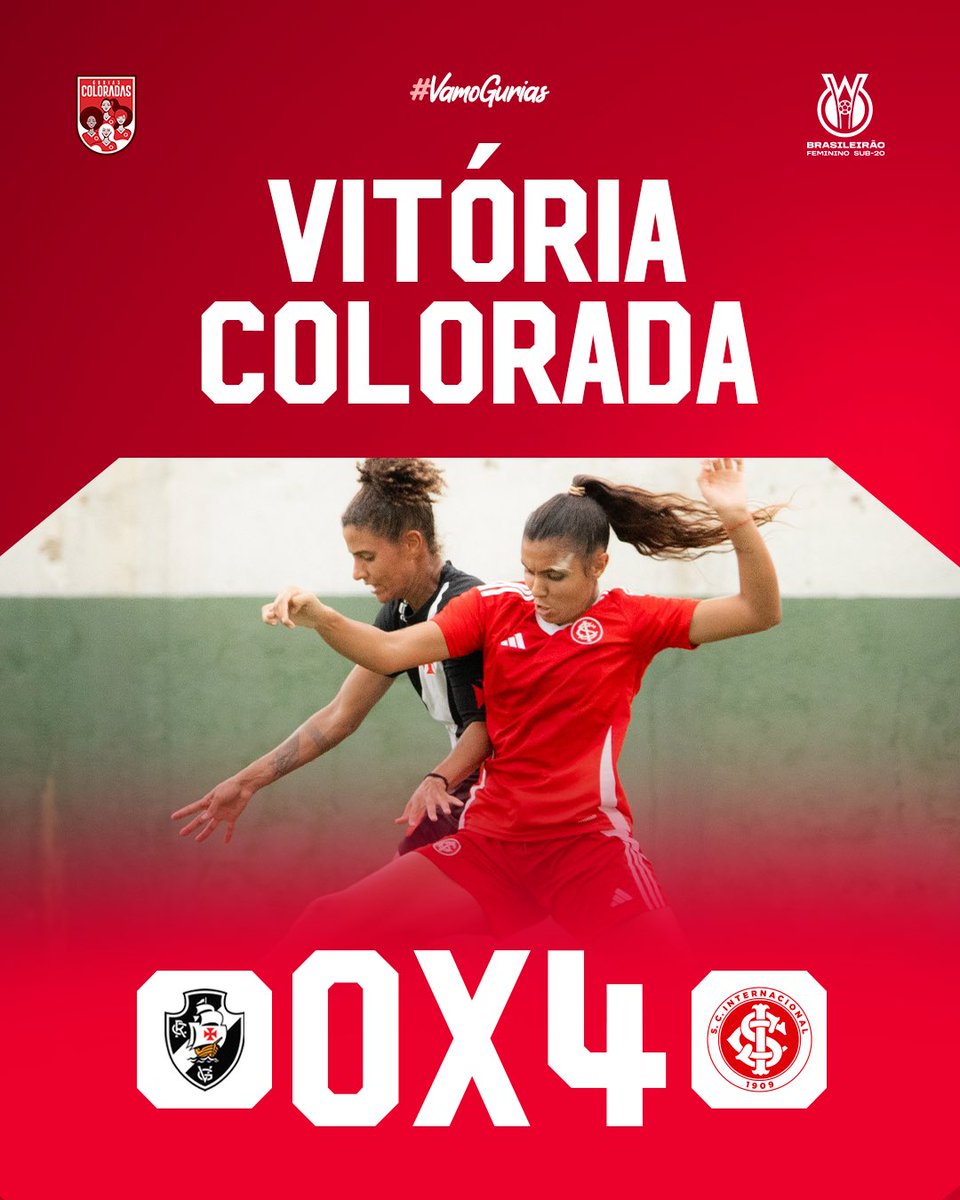 Com gols de Laura R., Laura Dupont, Duda Freitas e Lara Lay, as Gurias golearam o Vasco por 4 a 0 e chegaram aos 12 pontos no Brasileiro Sub-20. Na última rodada, o Inter encara o Criciúma, no CT FUTVIDA, no próximo domingo (05/04), às 15h.