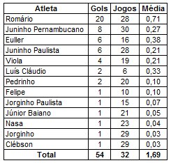 Obs: Hélton sofreu o 1º e 2º gol. Fábio sofreu o 3º e 4º gol.